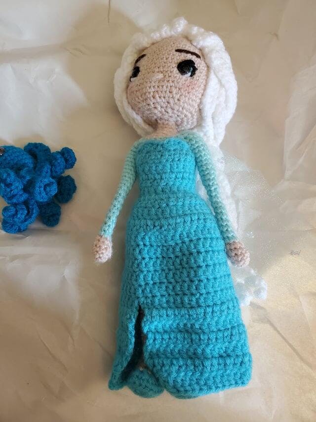 Introducing our Elsa Princess, the perfect companion for your little one or beautiful shelf decoration! With a beautiful tulle cape and posable arms, this 11" tall doll is inspired by the beloved character Elsa. Hand wash in cold water and set flat to dry, and be sure to handle the delicate cape with care. Bring the magic of Frozen to life with this Elsa!