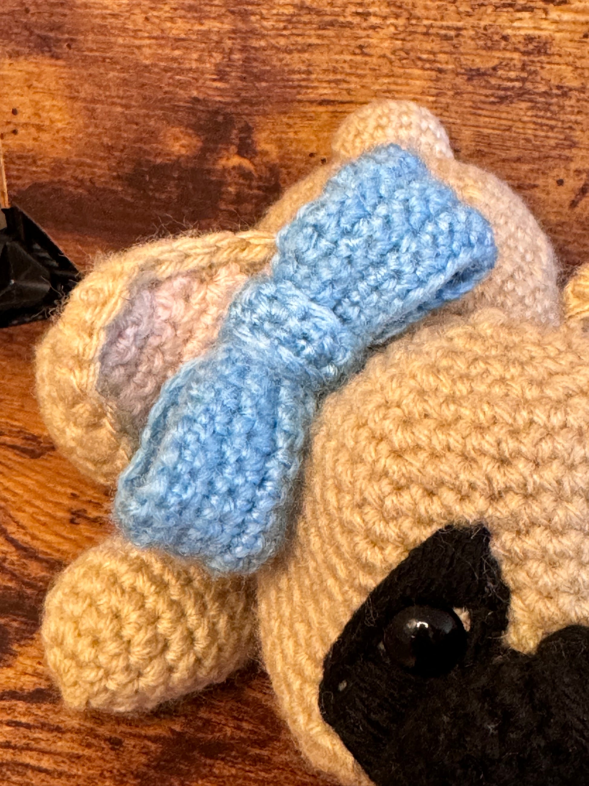 This charming French Bulldog is a delight to behold as it lays down with an air of sweetness and sassiness. The bow on its head is customizable, adding a personal touch to this already adorable figure. Hand wash in cold water and lay flat to dry for easy maintenance.