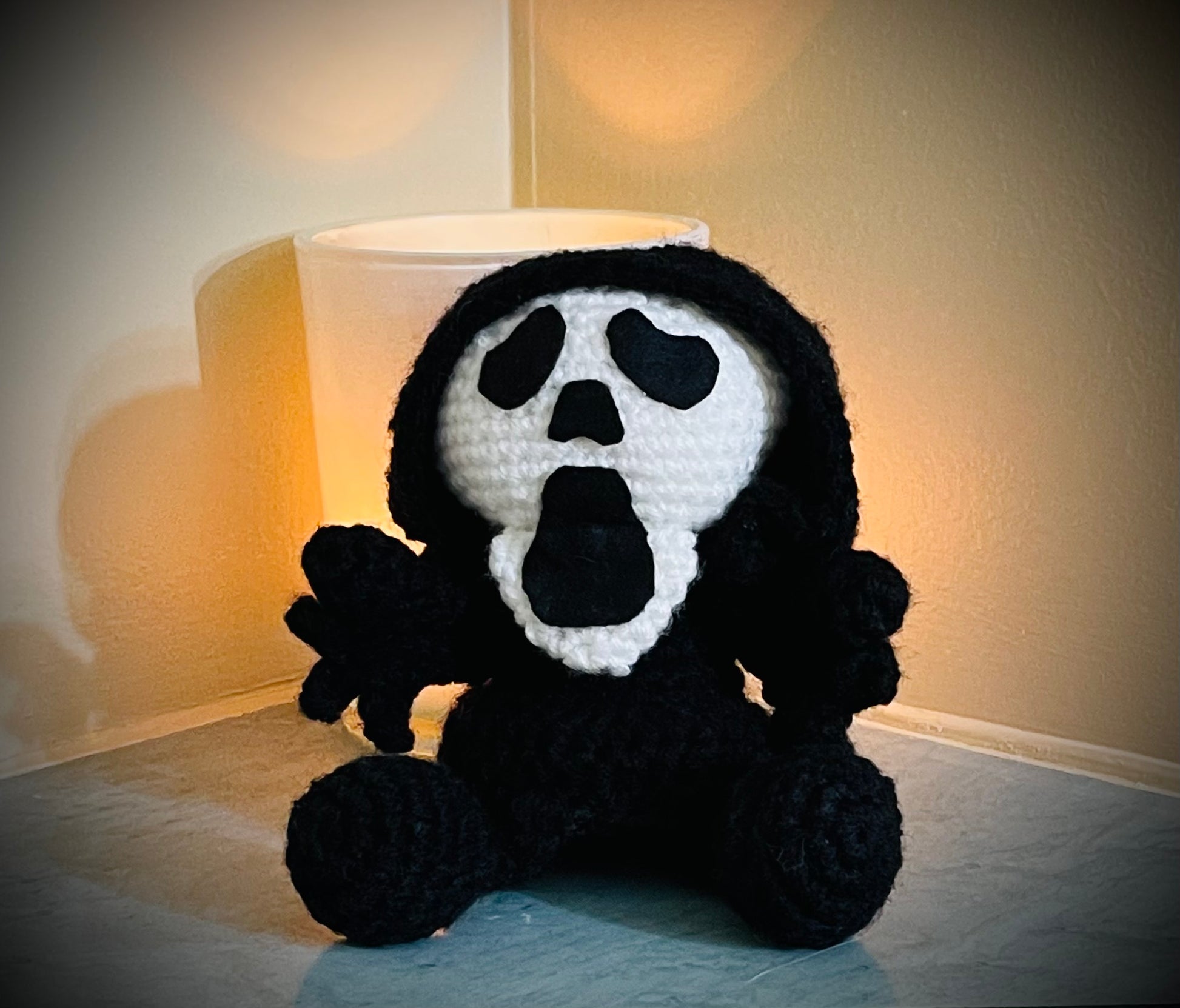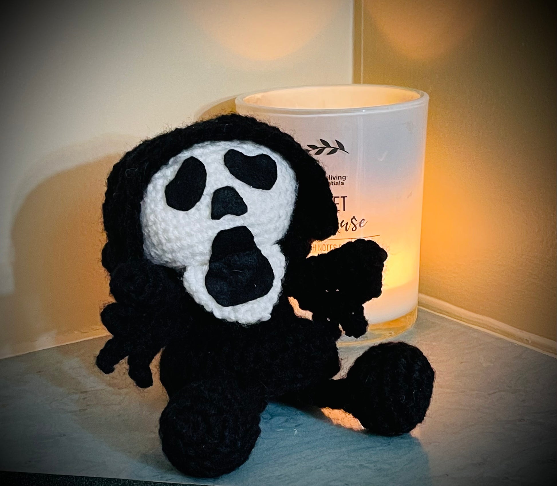 The Ghostface Stuffy is a must-have for fans of the iconic Scream movies. At 5.5 inches tall, it's both cute and cuddly, making it a perfect addition to any movie collection or theater. Handmade with love, this stuffed toy is a unique and charming tribute to the horror franchise.