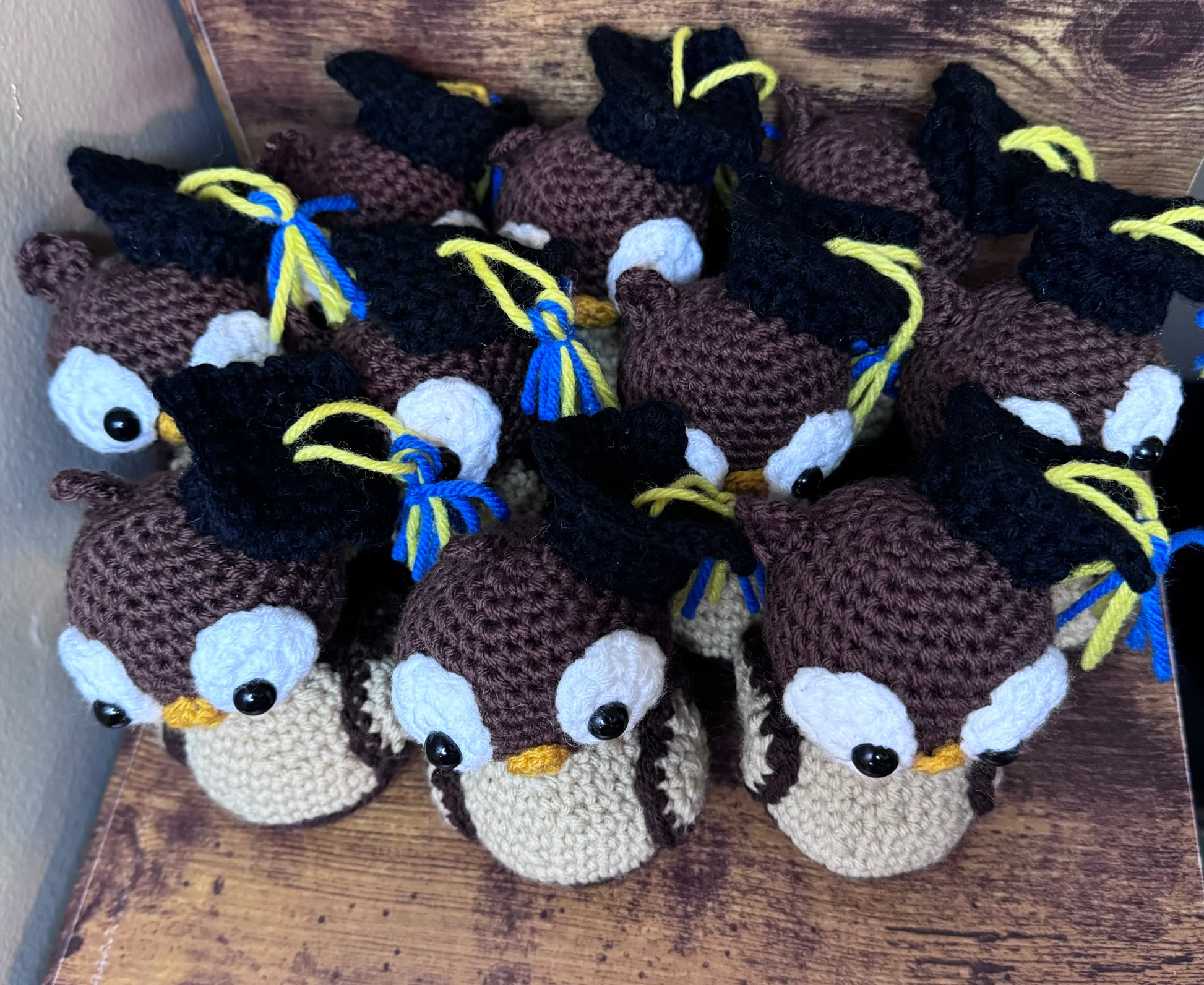 Celebrate your school achievements with a unique and special touch by choosing a graduation owl in the colors of your school. Each one is carefully crafted by hand with love, standing at approximately 7 inches tall.