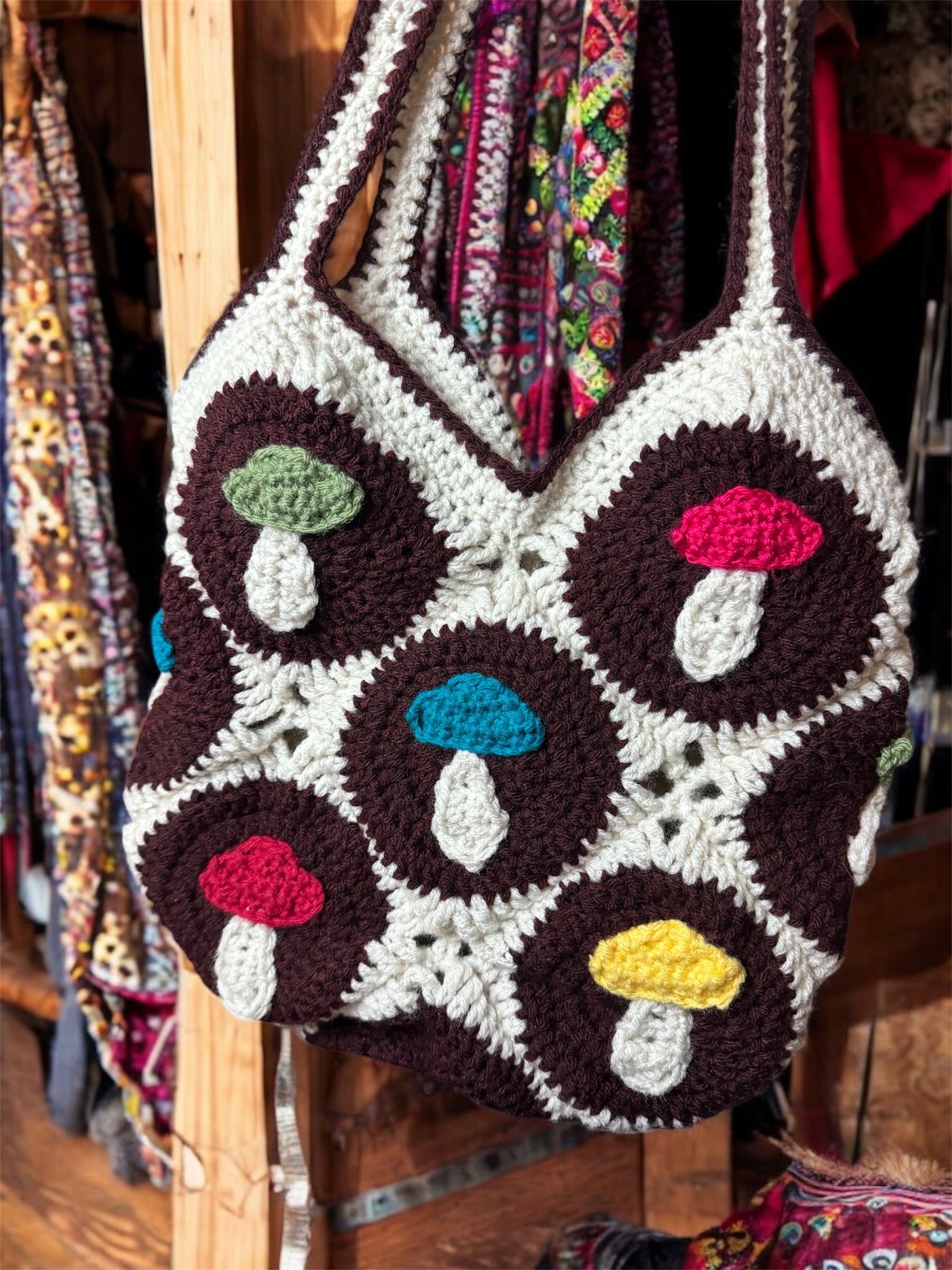 Step into a touch of whimsy with this handmade crochet mushroom purse. A perfect mix of cozy cottage core and everyday functionality! Each bag is lovingly crafted with colorful mushroom granny squares, giving it that playful woodland vibe that stands out wherever you go.