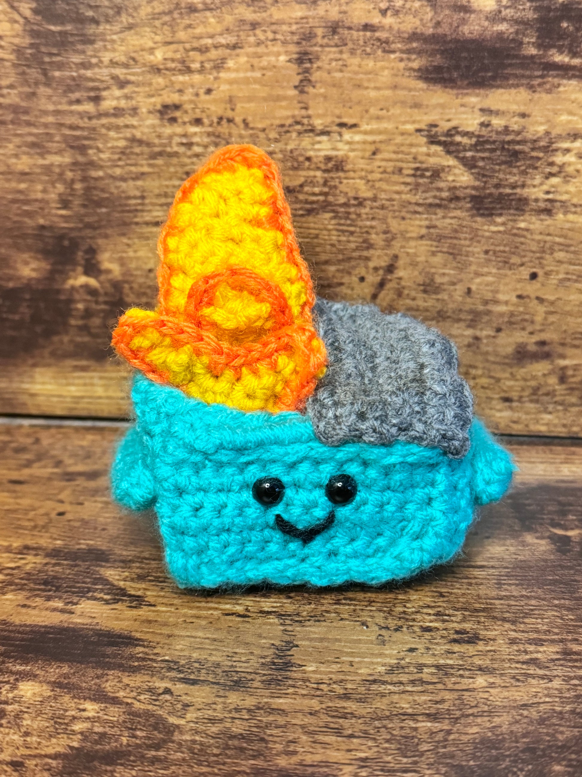 This unique Mini Dumpster Fire is a must-have for any collector. Each one is handmade with love and no two are alike, ensuring a one-of-a-kind piece. Made with vibrant colors that can be customized, it adds a touch of whimsy to any space. Easy care instructions, simply hand wash in cold water and set flat to dry.