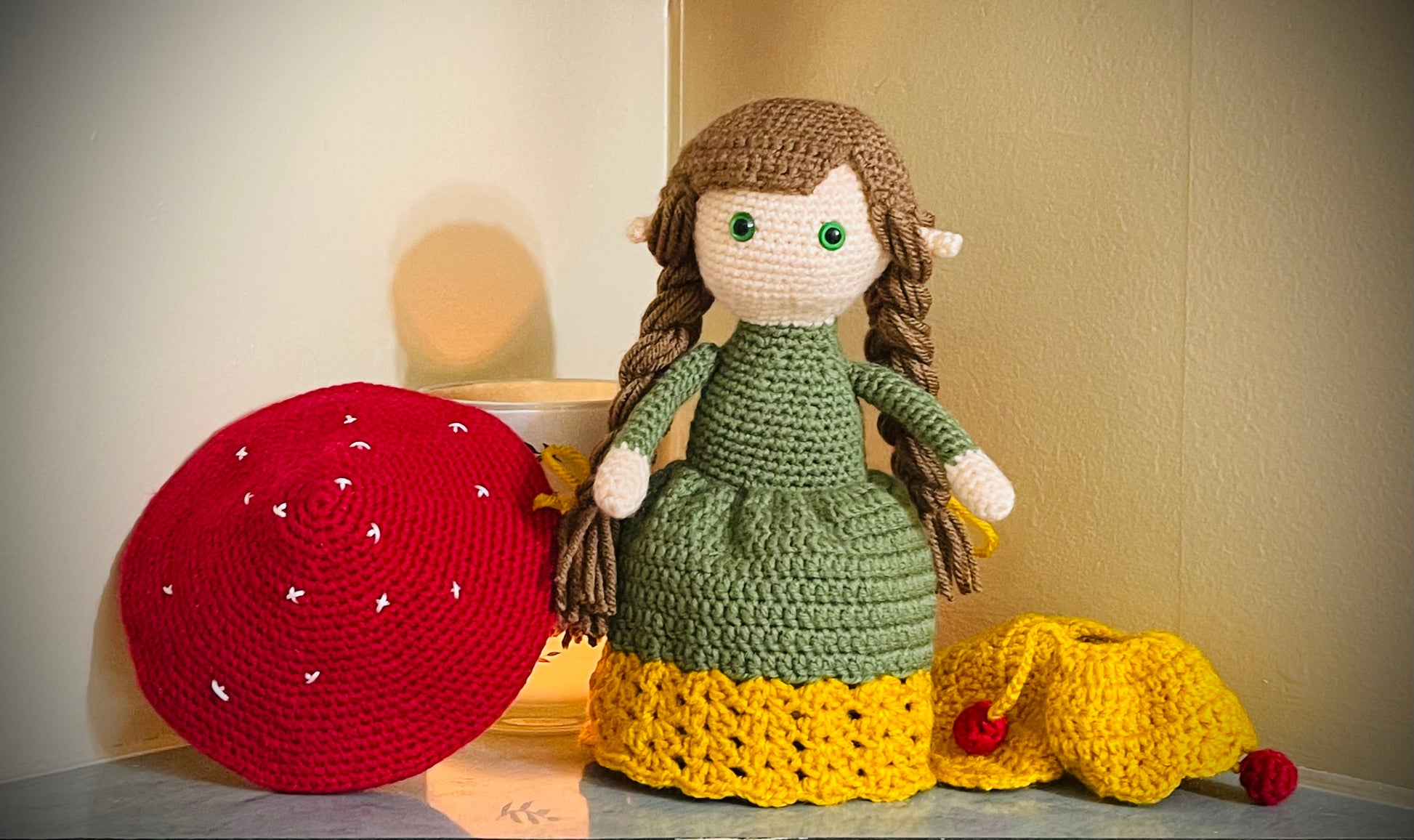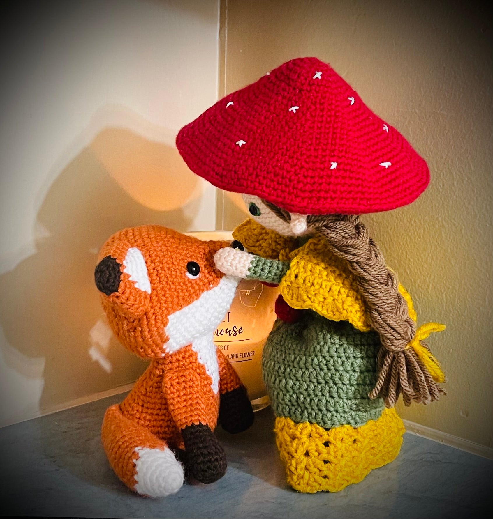 Introducing the Mushroom Woodland Fairy! This magical creature is fully customizable and stands at a height of about 16 inches. You can remove her cap and shawl for a different look. The best part is, she can stand on her own! If she gets a little dirty, just hand wash her in cold water and lay her down to dry. Each Woodland Fairy is handmade with love and extra strong to withstand lots of playtime with your little ones or perfect for that lifetime on the shelf.